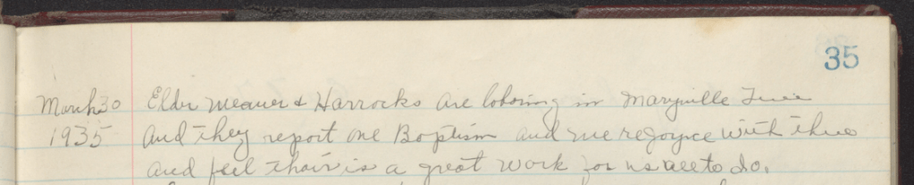 27 March 1935: Robert Madison was baptized by Clifford Olene Weaver and confirmed by Ralph William Horrocks