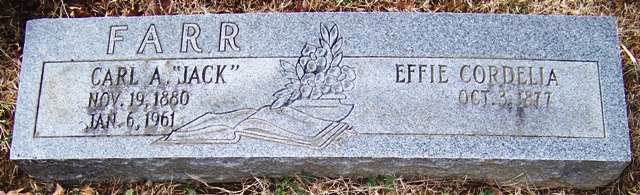 Carl Allen Farr was born in Maryville, Tennessee, in 1880, and was baptized, in 1911. He married Effie Cordelia Tanner in 1904. Effie, who is from Altamont, Tennessee, was baptized in 1896. It is unknown if they had any children who survived to adulthood. There is a small gravestone that has been found in the Altamont Cemetery in Tennessee with the name of their baby daughter Zella. A record found in the East Tennessee Conference of the Southern States Mission noted that Carl Allen Farr had “gone West” with his family some time after his baptism. Carl died in Tennessee, in 1961, at the age of 80. He is buried in the Altamont Cemetery. Effie died in Texas, in 1965, at the age of 87. She is buried with Carl in the Altamont Cemetery.