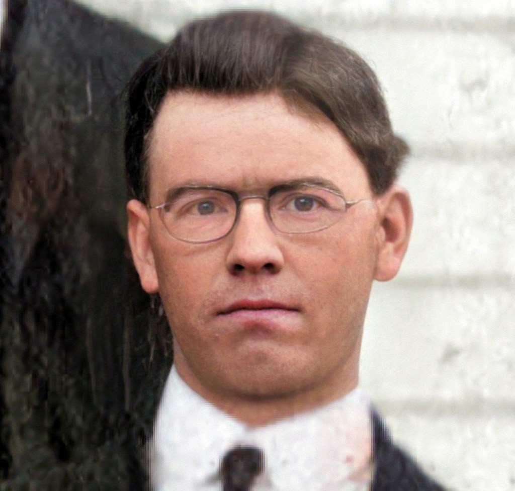 Ironically, the missionary who baptized Leroy Russell’s father, Charles Russell, is photographed in 1909 in this photo with Eva Smartt’s father – Leroy’s father-in-law – Lyman Smartt, and her grandfather, John Tipton. Eva and Leroy were not yet born. At the time of this photo, John Tipton and Lyman Smartt were both on the County Building Commission for the Northcutts Cove Chapel and Elder William Hunter, who baptized Charles Russell, attended the dedication of the chapel with the East Tennessee Conference and their mission president, Charles A. Callis. This photo was taken two years before Leroy was born. Elder William Hunter had changed the course of history for the Russell family the month before by baptizing Charles Russell and was standing with the men who would become part of the Russell family through the marriage of Leroy Russell and Eva Smartt decades later.