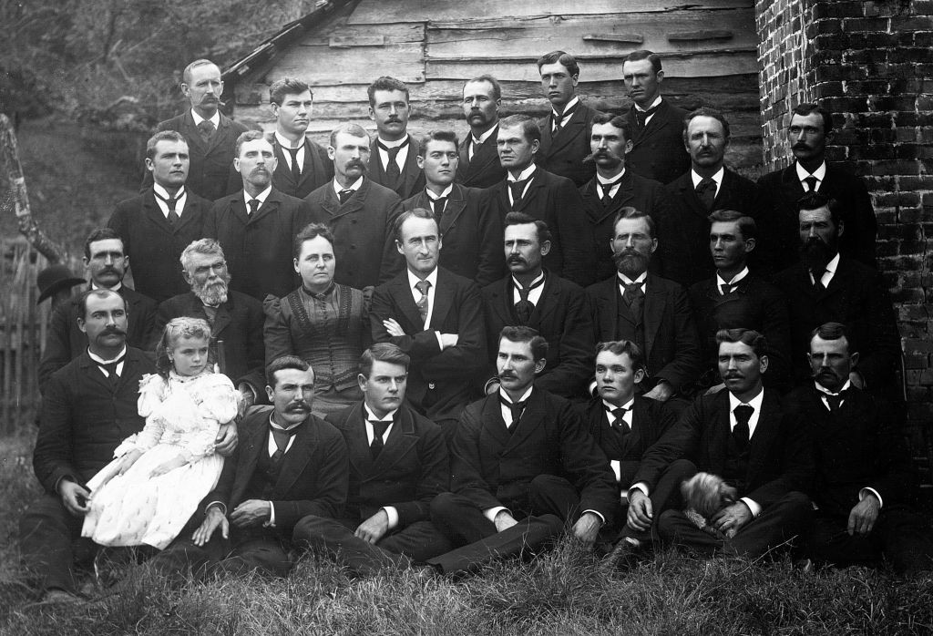 2nd Row L-R: James Alma Muir; Wesley Burnett; unidentified; Elias Smith Kimball; John Hyrum Hubbard; John Matthew Johnson Allen; Hans Walter Christensen; Robert Newton Egbert