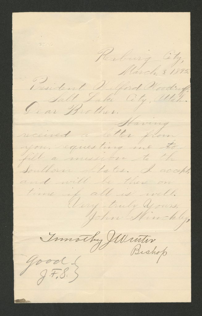 Source: John H. Hinckley Mission Journal, 1895 February-1896 October, https://catalog.churchofjesuschrist.org/assets/7f0c7537-7be2-45e2-be6b-277c651e20d2/0/47?lang=eng (accessed: November 2, 2024).